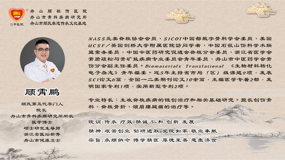作為百年中醫(yī)骨傷文化的傳承者,我們始終恪守 "予人為善,治病救人" 的辦院宗旨,將顧氏中醫(yī)骨傷精髓融入診療全過程。我們將以高尚的醫(yī)德為基石,以精湛的醫(yī)術(shù)為保障,以優(yōu)質(zhì)的服務(wù)為紐帶,在整潔溫馨的診療環(huán)境中,為每一位患者提供精準(zhǔn)診療。讓百年顧氏的品牌力量、百年沉淀的醫(yī)學(xué)精髓、百年積累的臨床經(jīng)驗(yàn),持續(xù)惠及社會(huì)各界,為廣大患者打造更便捷、更優(yōu)質(zhì)的醫(yī)療服務(wù)體系。